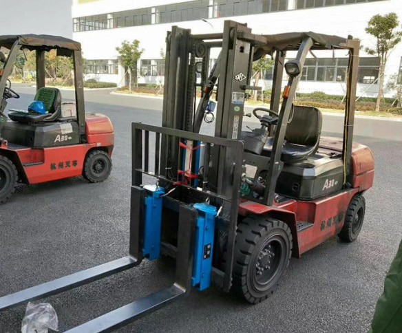 左右貨叉各別裝掛在左右組的模塊上。安裝本產品后的叉車的貨叉,依然能保留其左右側移的功能,以便調整其寬度以及仍然能安裝各種叉車的屬具,如夾抱器和旋轉器等等。